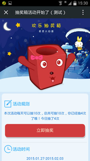 在乐享公众账号输入“抽奖箱”或扫描二维码体验: